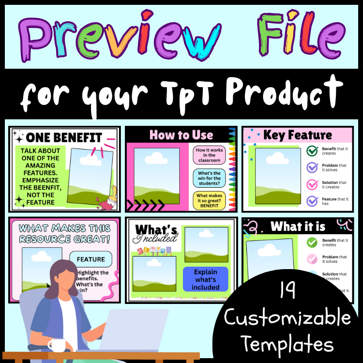 Finally, avoid small words that won’t be easy to read. Sometimes we have a lot we want to say, but save that for the product description or thumbnail images. Remember that the goal of your cover image is to get the teacherβs attention and peak their curiosity.