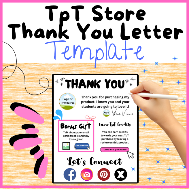 Your thank you page should include links for your customer to like and follow your page, for them to leave a review, and for them to follow you on social media or join your email list. It’s a great idea to also give them something for free in your thank you page so that they get on your email list or return to your TpT store.
