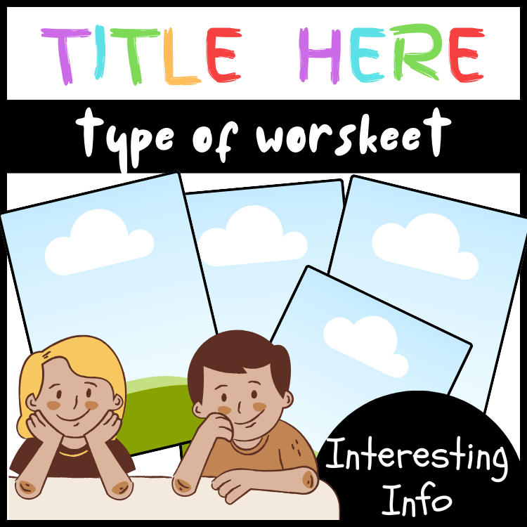 Notice the image above has three images where you would put the worksheet image. The clipart is not related to the product, it’s just of a person pointing at the image. Also note that in this cover, the title is at the bottom, and it is in a contrasting color box. The font colors match the background of the cover image.