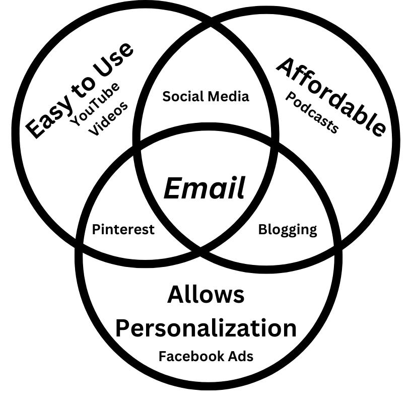 Email marketing is also easier to begin, no need to worry about website design or Pinterest images.